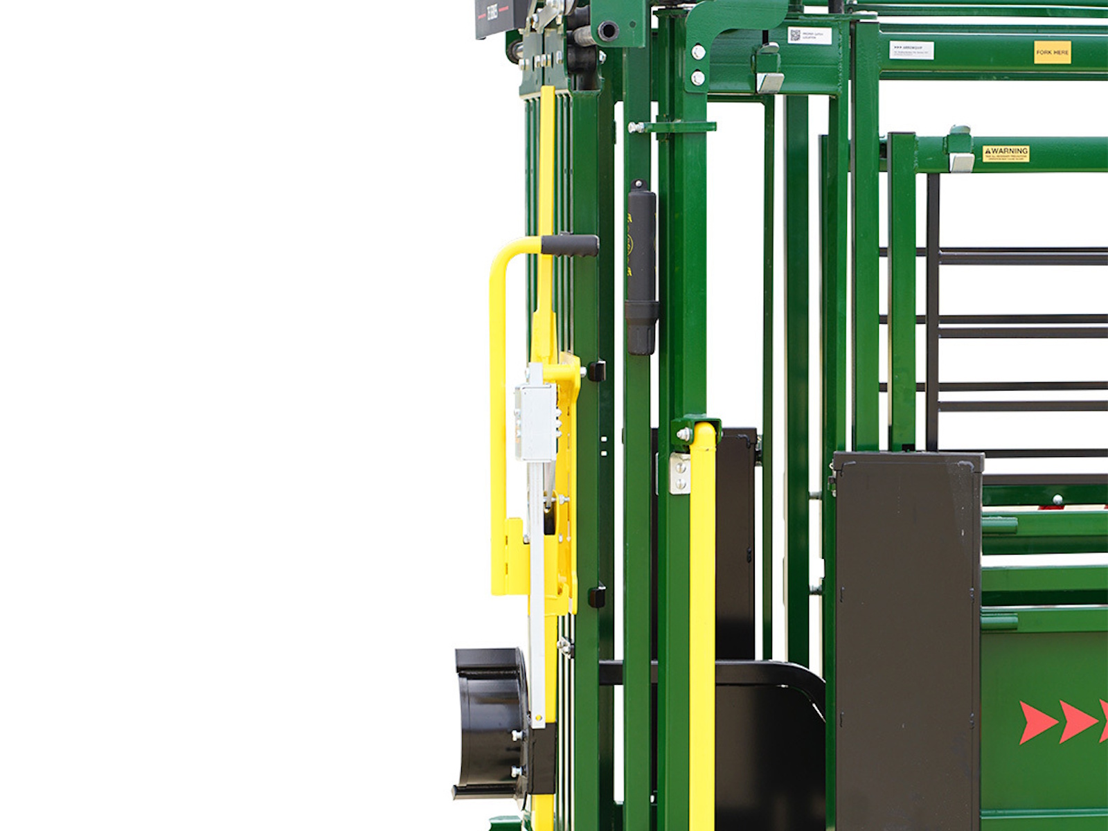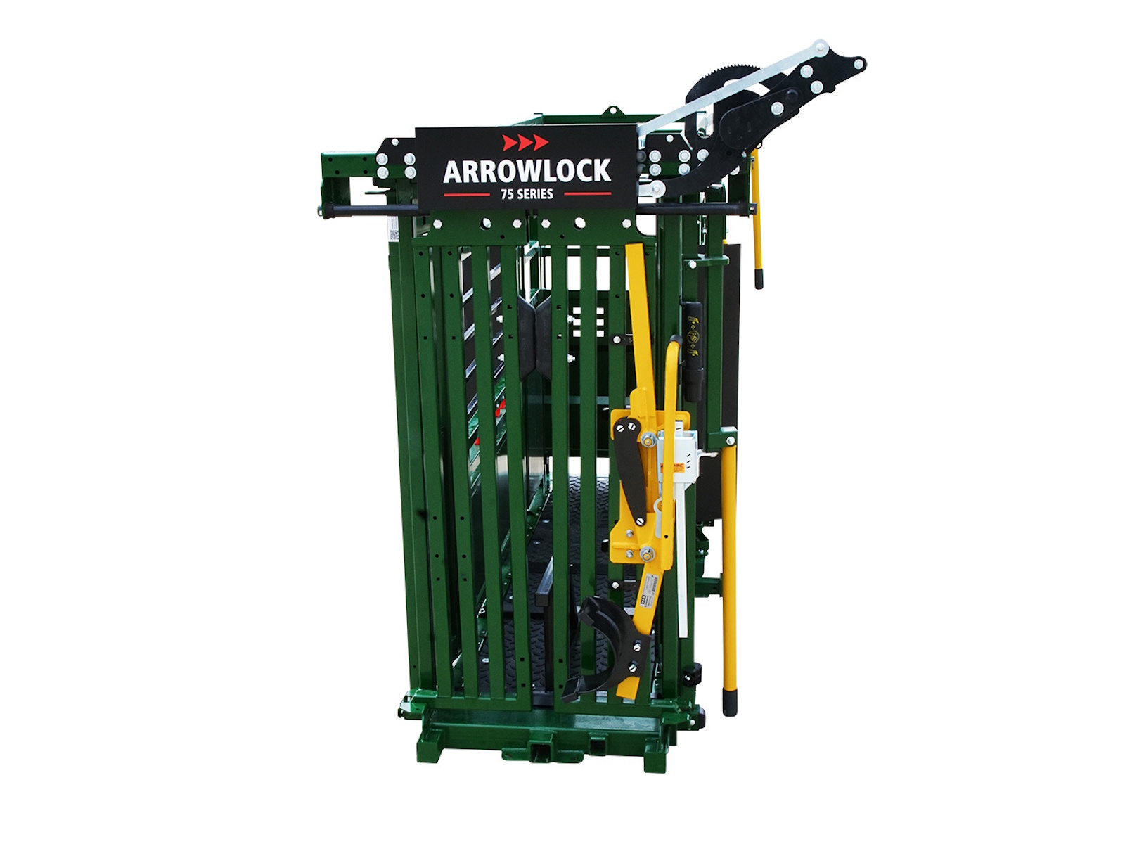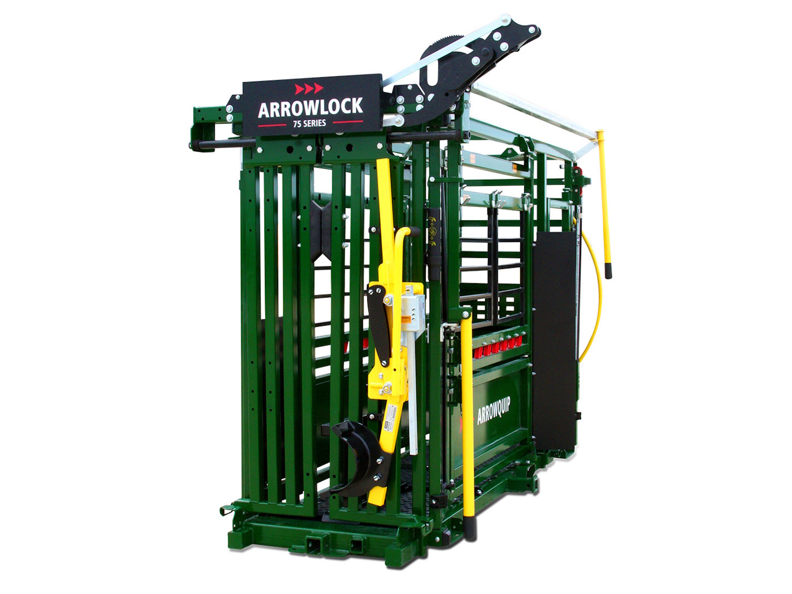 - The Arrowlock 75 Series allows you to access your cattle through a series of access points. With top and bottom swing-out gates for full side access, a drop-down needle door, and side access panels, you can treat or brand your cattle with ease. The 75 Series Deluxe Model features a full-size vet cage with optimal head clearance so your animals can be accessible from all angles.