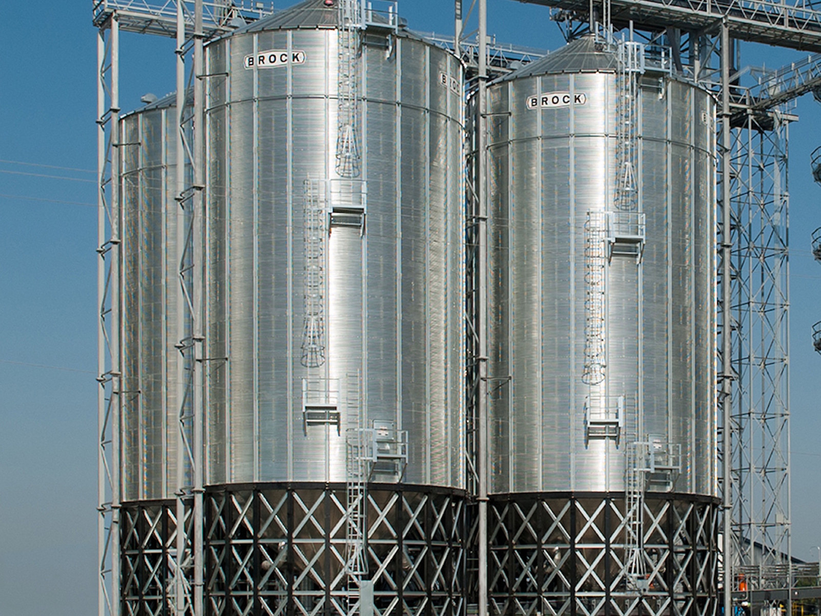 Brock offers you more models and choices – from 15- to 42-foot (4.6- to 12.8-m) diameter hopper-bottom holding bins with strong, narrow-corrugation sidewalls and a maximum storage capacity of over 106,600 bushels (2,693 metric tons).