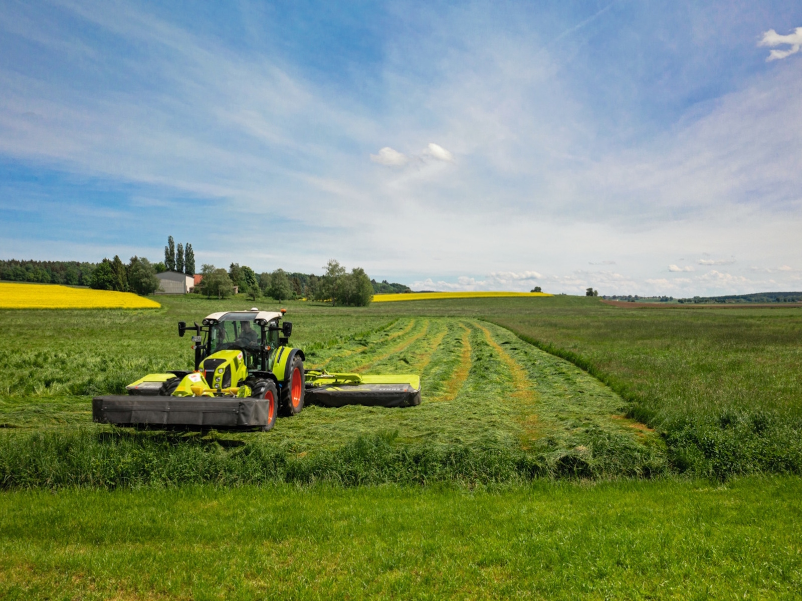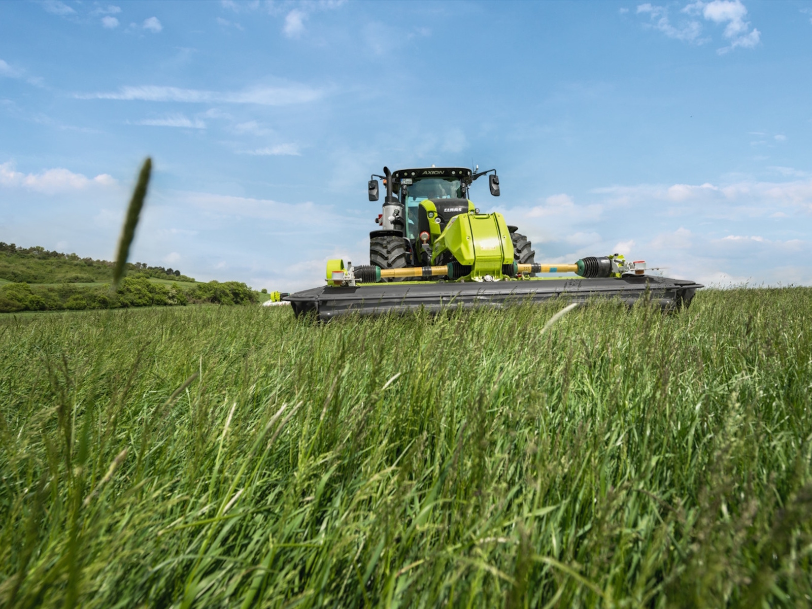 ACTIVE FLOAT enables you to respond quickly and easily to all sorts of different conditions, such as wet spots or dry hillocks, and non-uniform crop material. The mower ground pressure can be flexibly adjusted with a single-acting control unit even while the machine is working. The current setting can easily be read from a pressure gauge, which is clearly visible from the cab.