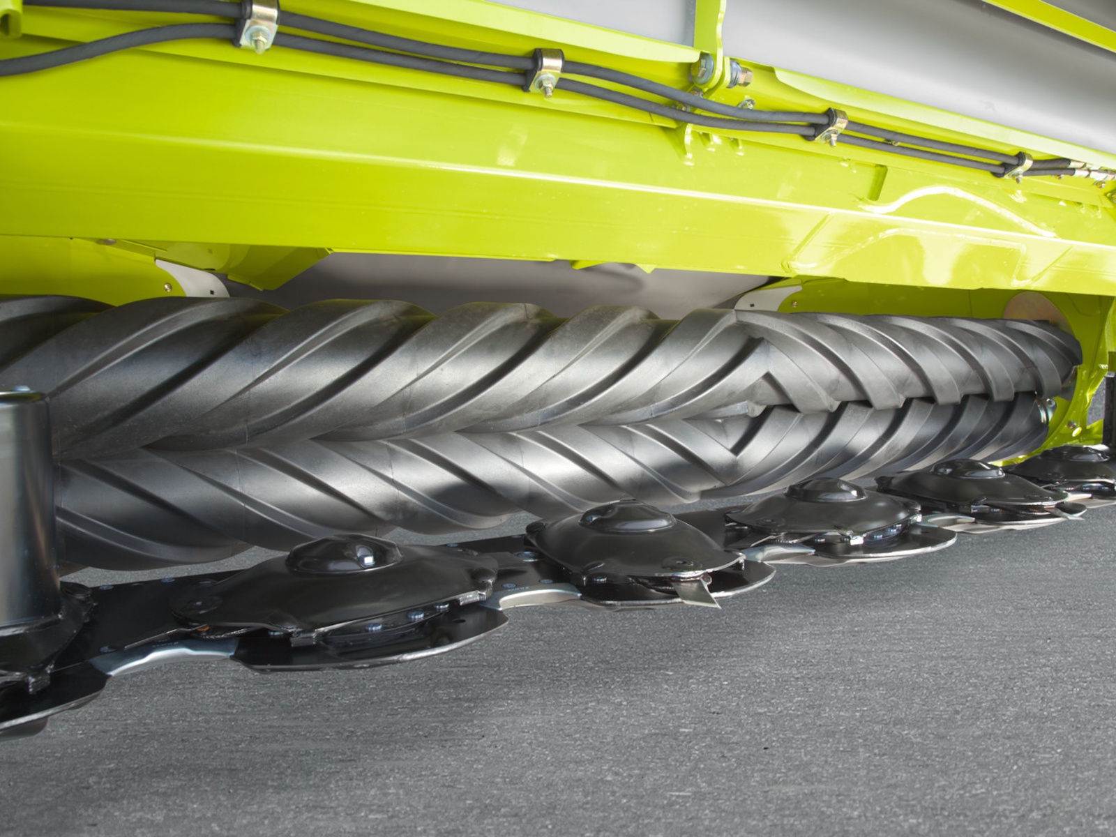 Tine conditioners with V-shaped tines in a spiral configuration are ideal for harvesting grass crops. Conditioning intensity is set via a baffle plate. Flexible mounting allows the tines to give way and pass around any objects that find their way into the conditioner – stones, for example. This avoids repair costs. As an option, the harvest crop can also be spread over the entire working width with a wide crop spreader, or deposited in a single swath with adjustable swathing plates.