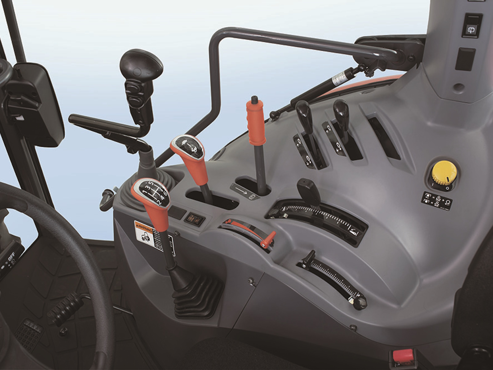 - 540/540E Change Lever - The PTO lever is now located inside the cabin for more convenient access. You no longer have to exit the cabin to operate the PTO lever when working with PTO implements.