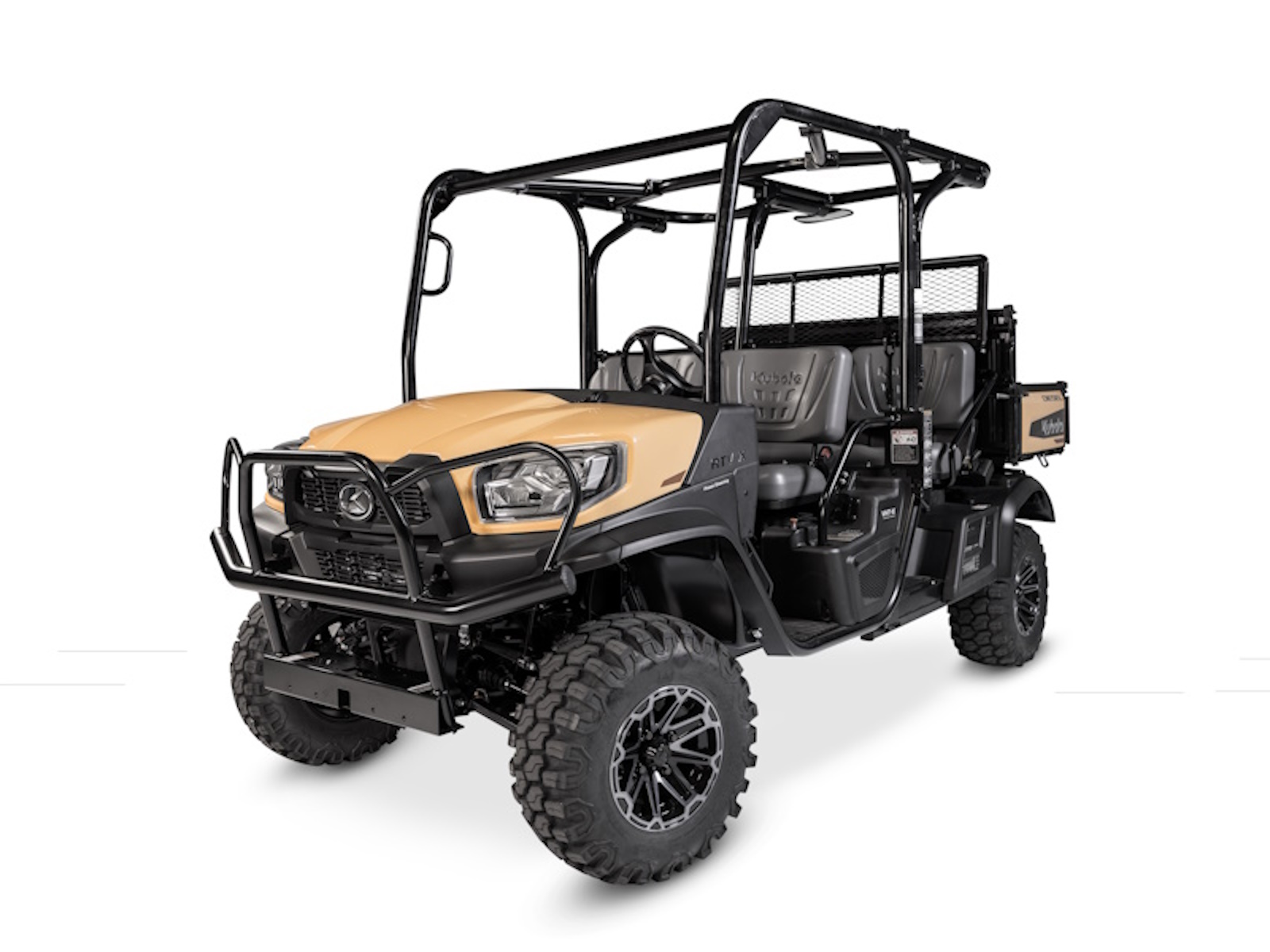 - The exterior design of the RTV-X CREW has been revamped to feature LED low and high beam headlights, enhancing visibility in low light conditions. You can select your preferred color from three options: Orange, Camo, or the newly introduced Desert Sand.