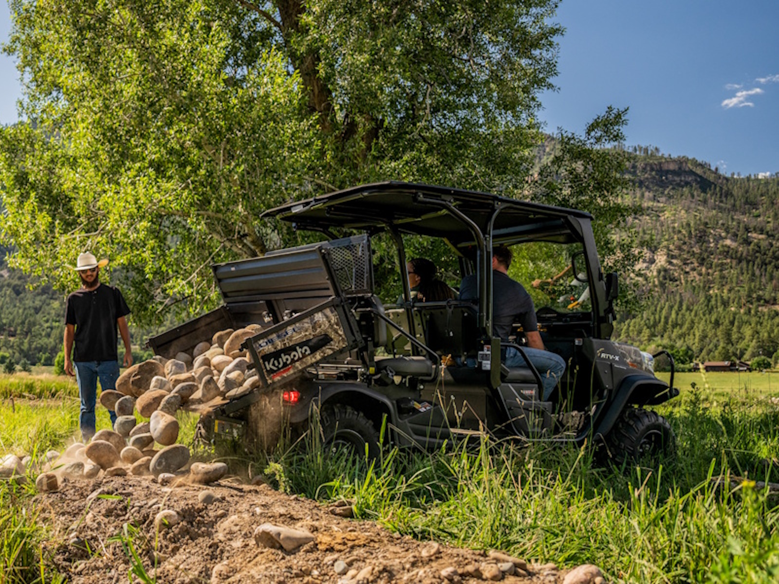 This model is engineered for versatility, effortlessly shifting from carrying cargo in its hydraulic dumping bed to accommodating friends and family with an additional row of seats. It comes equipped with a range of practical features and is driven by a reliable 23.3 HP Kubota diesel engine. Additionally, it includes a standard two-year or 1,000-hour warranty. Choose from colors like Orange, Realtree AP camouflage, and Desert Sand. It stands as North America's top-selling diesel UTV.