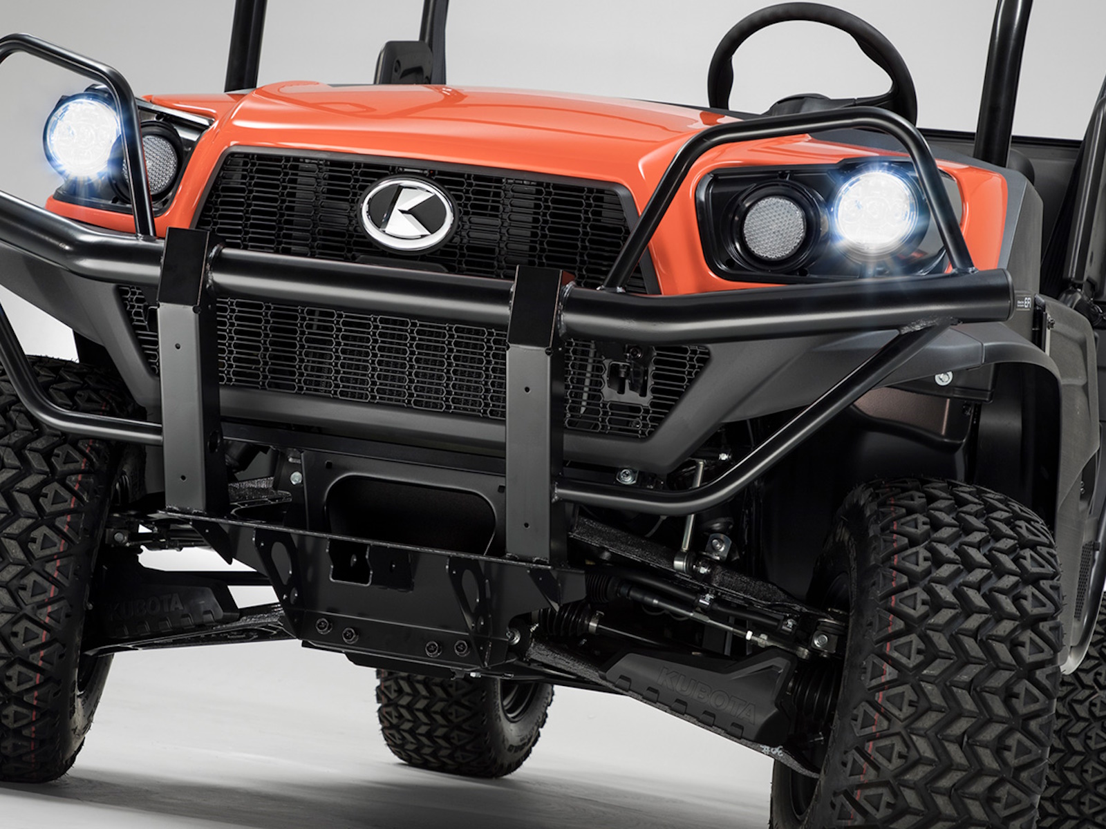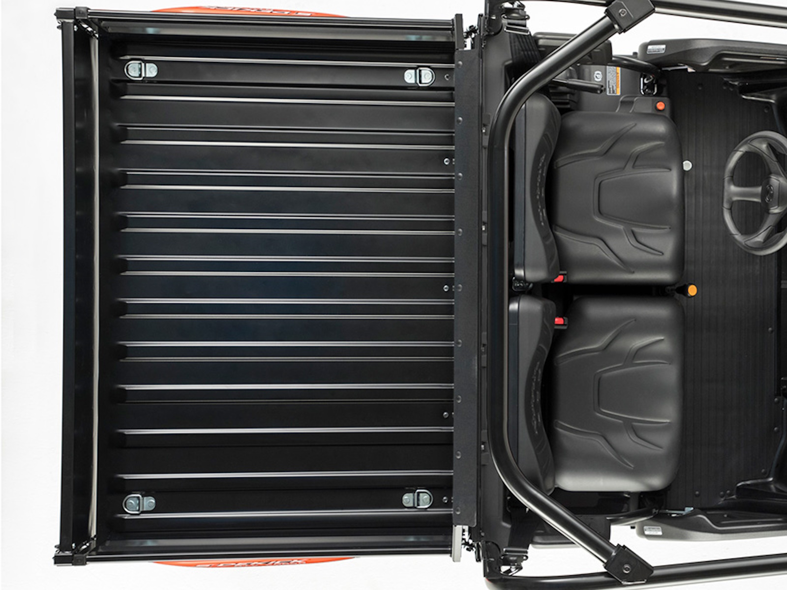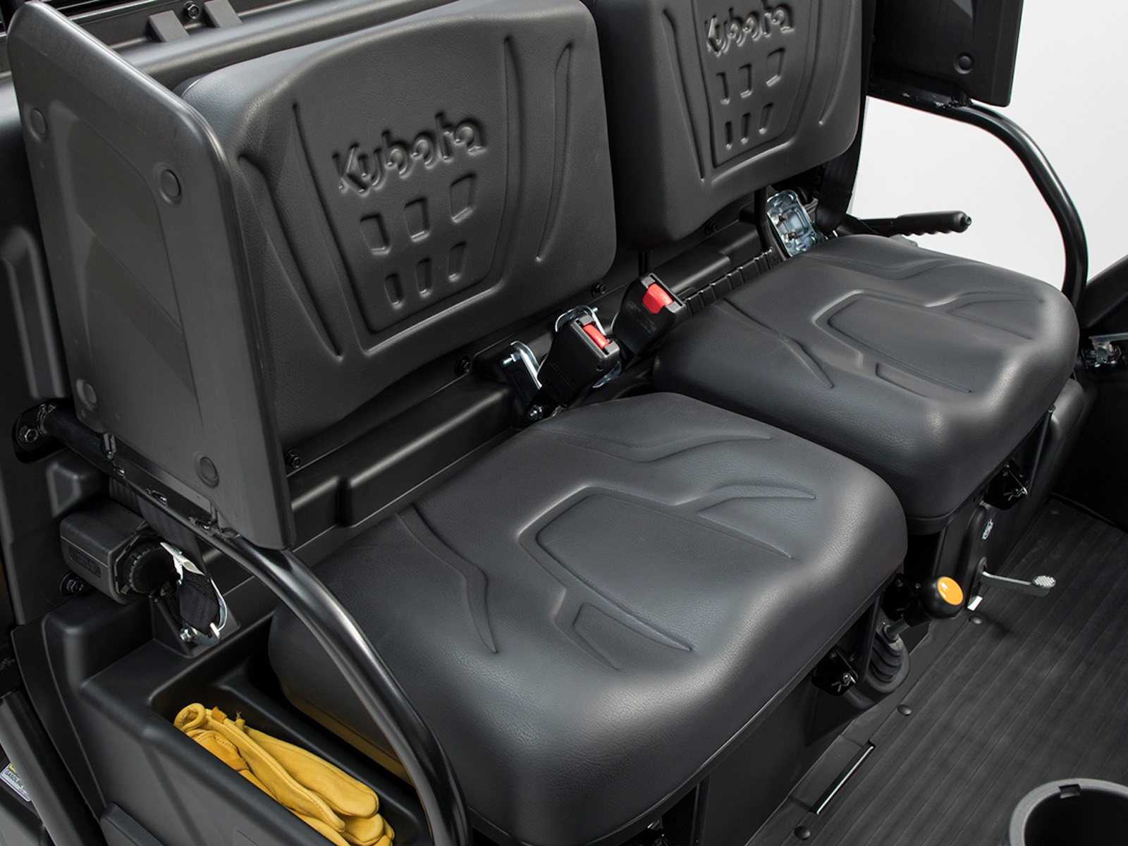 - Half doors keep out dirt, brush and other unwanted elements while making it easy to get in and out. Shoulder guards on the ROPS help keep everyone inside the vehicle during operating. The split-bench seat style is ergonomically designed to provide hours of working comfort. The seat design provides the appropriate space for both driver and passenger.