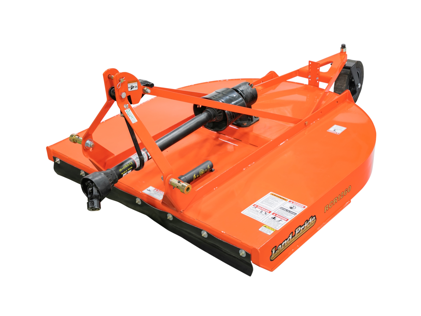 The RCR12 Series Rotary Cutters from Land Pride is an economical solution to grass maintenance on farms, rural areas, or vacant lots. The 1" cut capacity makes it a good solution for rough-cut areas that have small saplings and weeds. The RCR12 is a good match for a subcompact or compact tractor up to 60 HP and features a fully-welded deck and a 24" stump jumper.