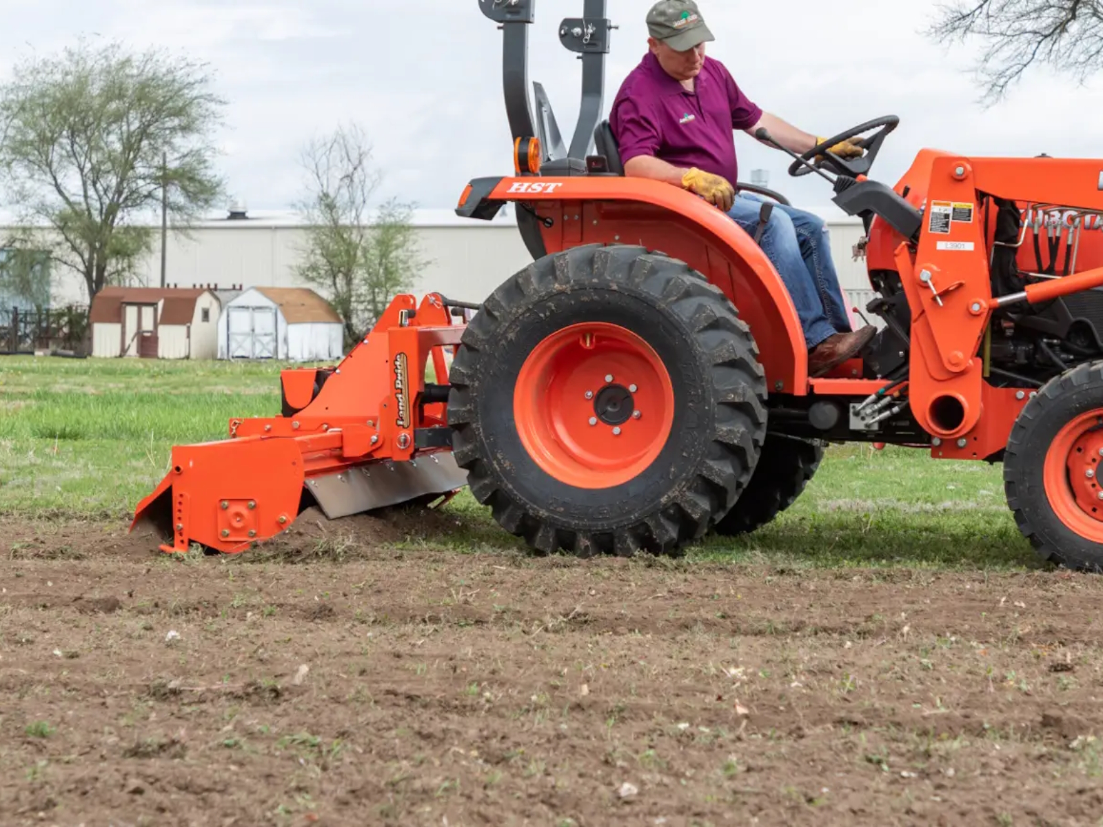 The Land Pride RTR12 Series Reverse-Till Rotary Tillers turn the soil to prepare a seedbed for gardening or lawn seeding. With uses in both rural and non-rural applications like landscaping and gardening, the RTR12 Series offers an economical tilling solution. The RTR12, and all Land Pride reverse rotation tillers, tends to achieve greater depth of penetration, moving and pulverizing more soil in the process, while burying residue as opposed to leaving it on top. Reverse tilling is not recommended for rocky soil. NOTE: Quick-Hitch may require a longer driveline, which is available through Land Pride Parts.