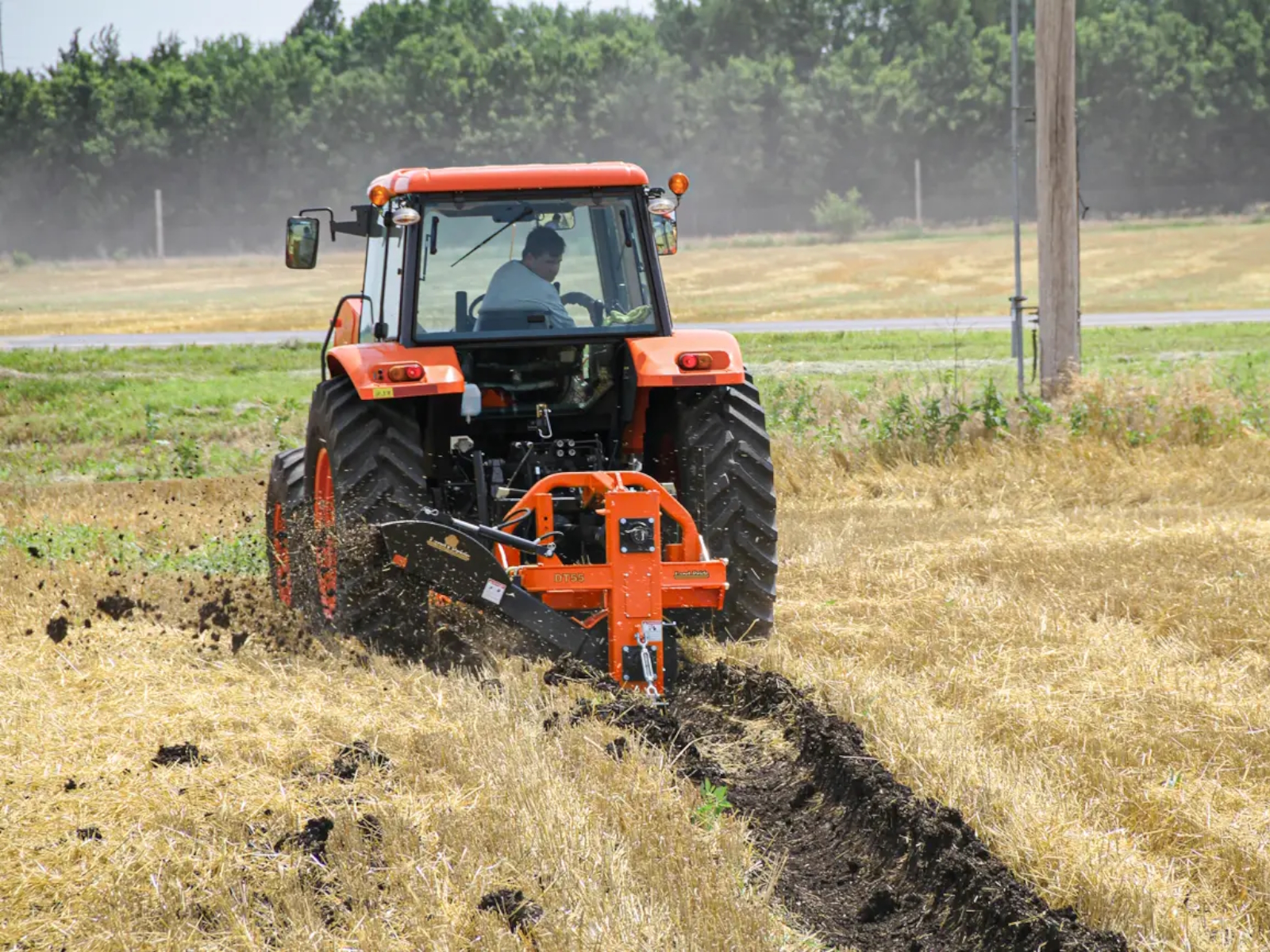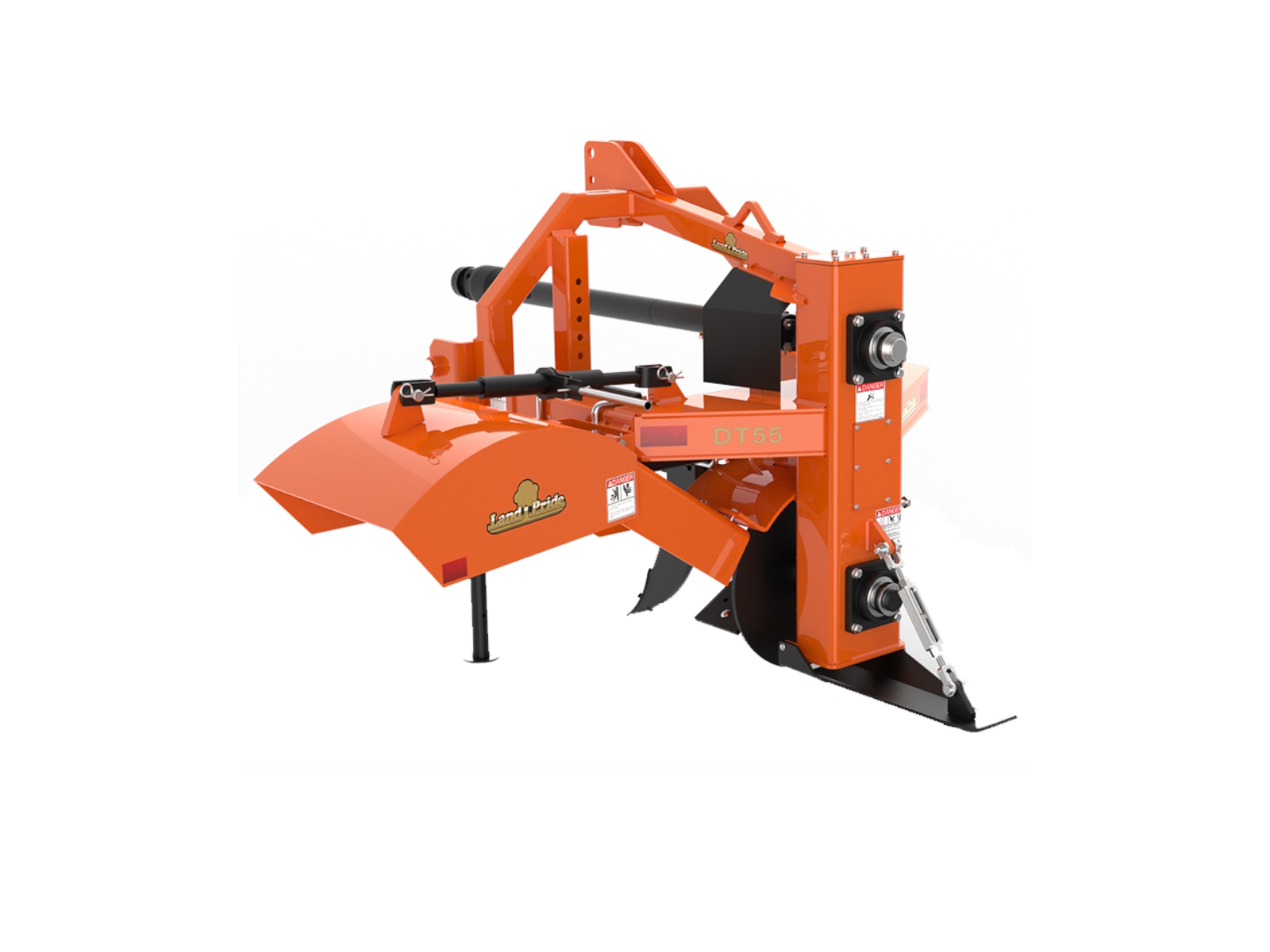 The DT55 / DTM55 Powered Ditcher is a versatile tool to use in many water control applications. Cleaning water ditches along roadsides or in farm fields to drain standing water away from crops, the DT55 makes it simple. The 20" impeller leaves a clean and sculptured trough to keep water flowing freely from unwanted areas. With the optional Material Control Chute in place, dirt can be placed just next to the machine or thrown many feet away to reshape terraces. Other options include depth-control gauge wheel and ripper shank.