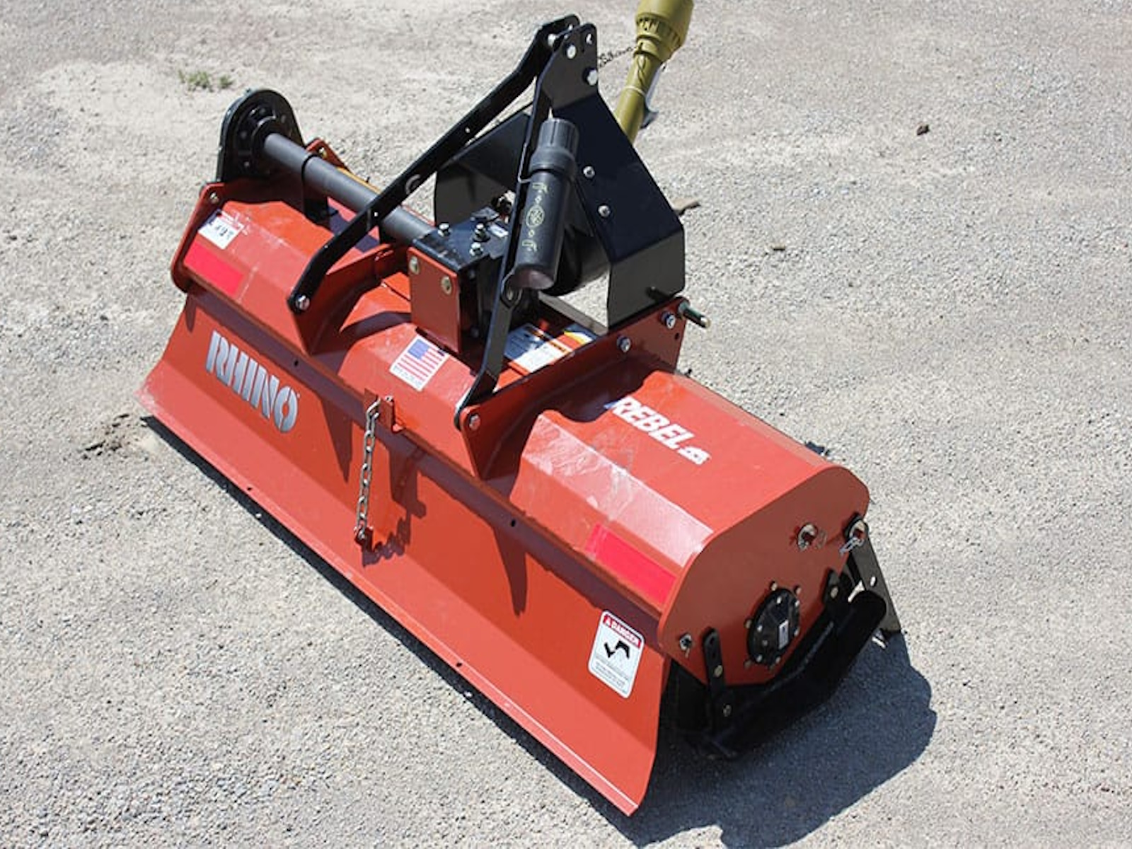 Rhino’s Rebel Series tillers are built tough. Every size in this line is available in both forward and reverse tillage. Each rotor comes equipped with a hardened, “L” shaped blade. With hitches continuously welded to the mainframe, as well as slip-clutch protection on the drive train, repairs and downtime are sure to be rare!