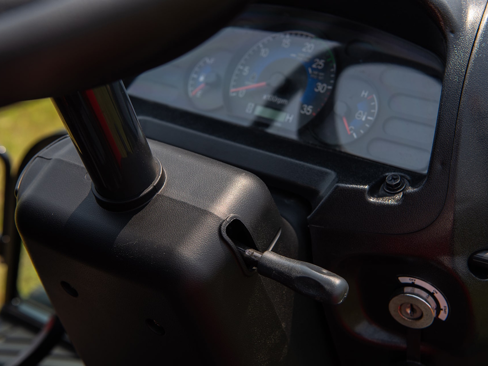 - The tilt steering wheel allows operators to adjust the position of the steering wheel for a more comfortable driving experience.