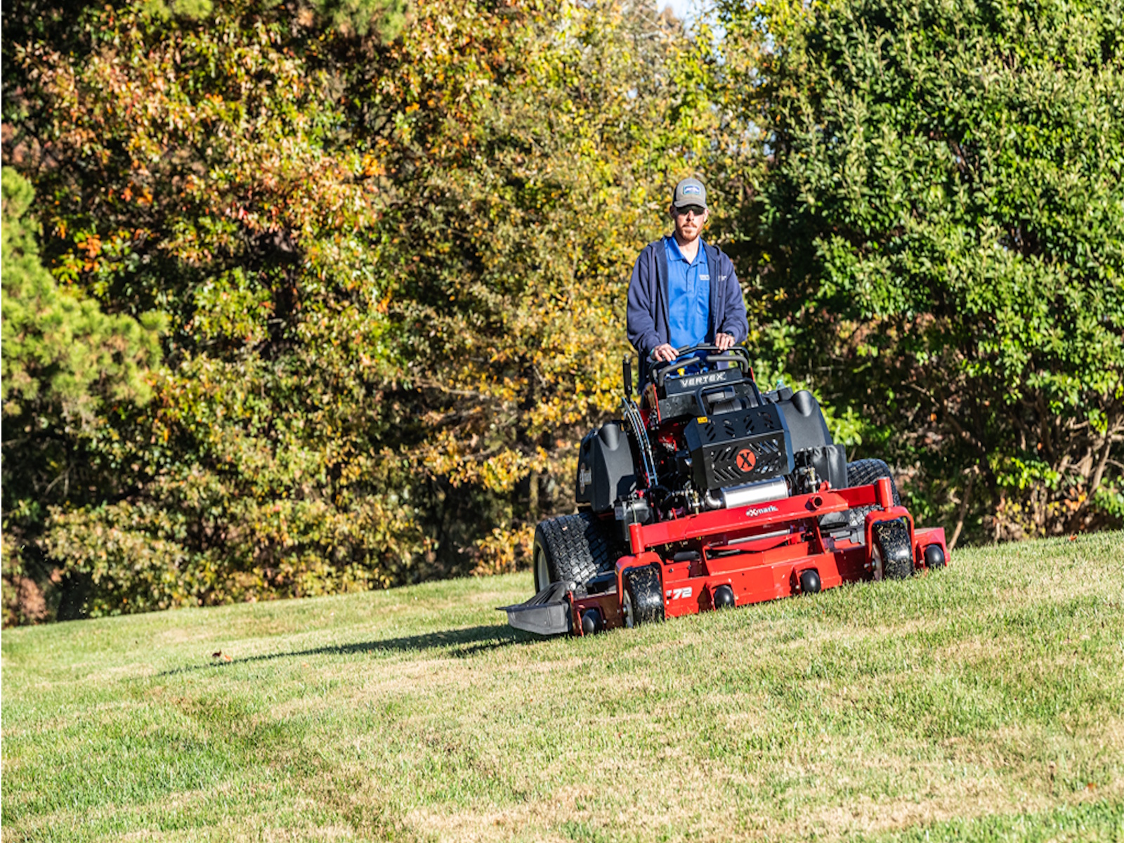 • The Vertex X-Series optimizes operator comfort with bolstered operator pad and suspended operator platform located low and centered between the rear wheels. When combined with the easy-to-use dual-action controls, you’ll feel balanced and in control of any situation.