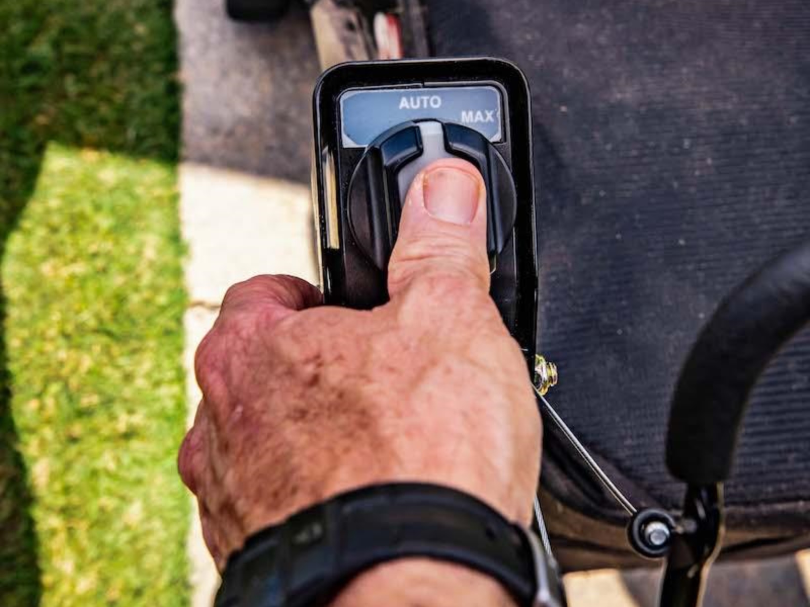 Select from battery conserving Auto, or full-power Max modes, depending on cutting conditions.