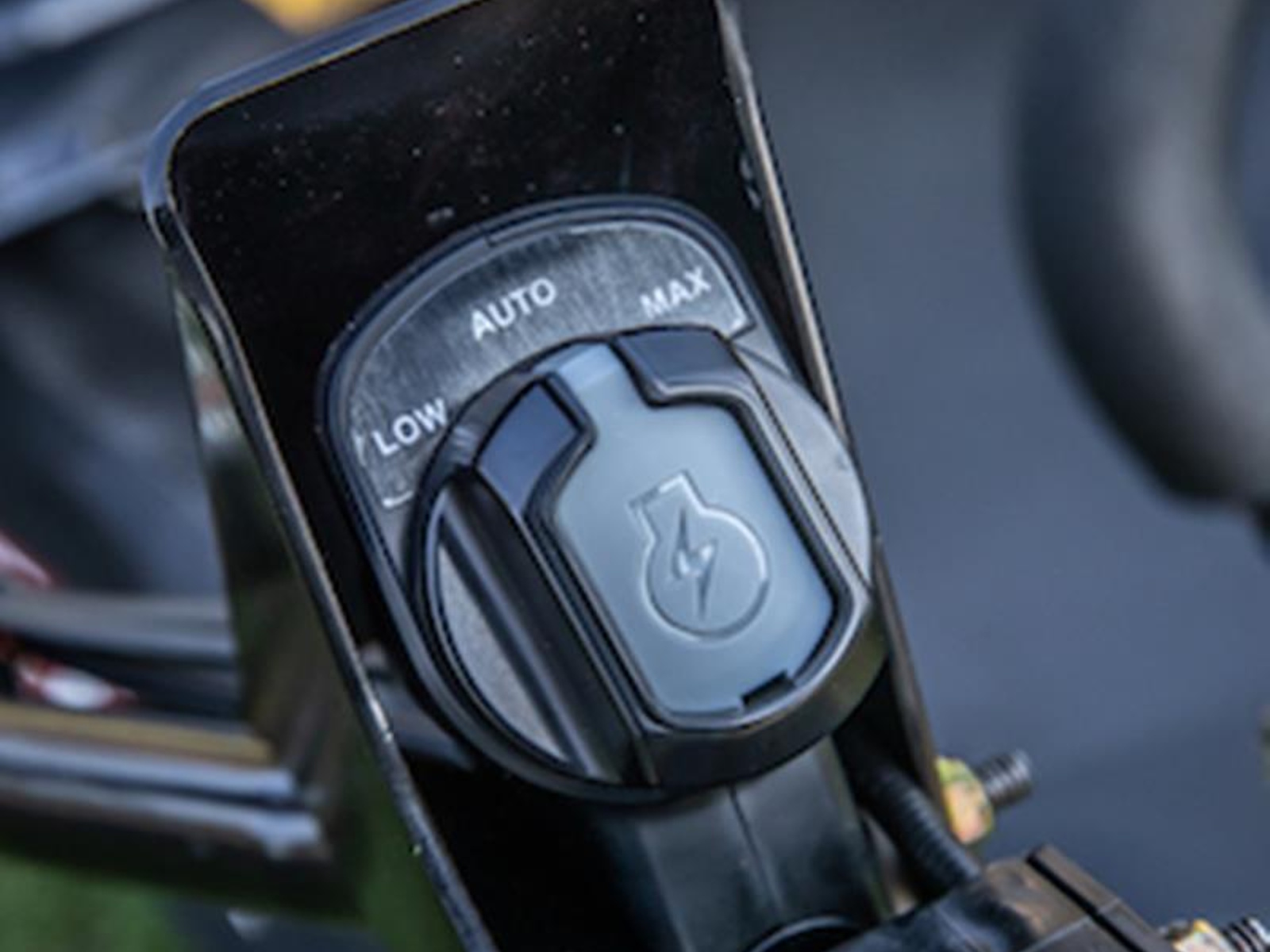 • Select from low- or high-settings on the electric powertrain, delivering 3.1- or 4.2-mph based on motor RPM.