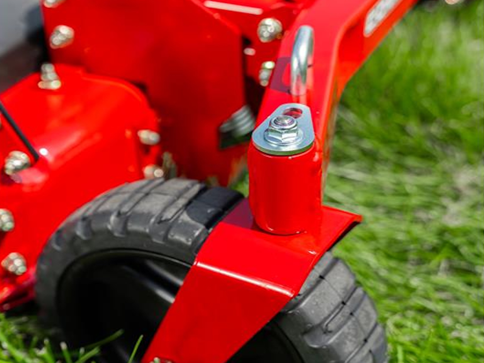 • Pivoting front wheels make turning and maneuvering easy without lifting the front of the mower. Increased cut quality and reduced operator fatigue are two great results. (Coming Spring 2025)