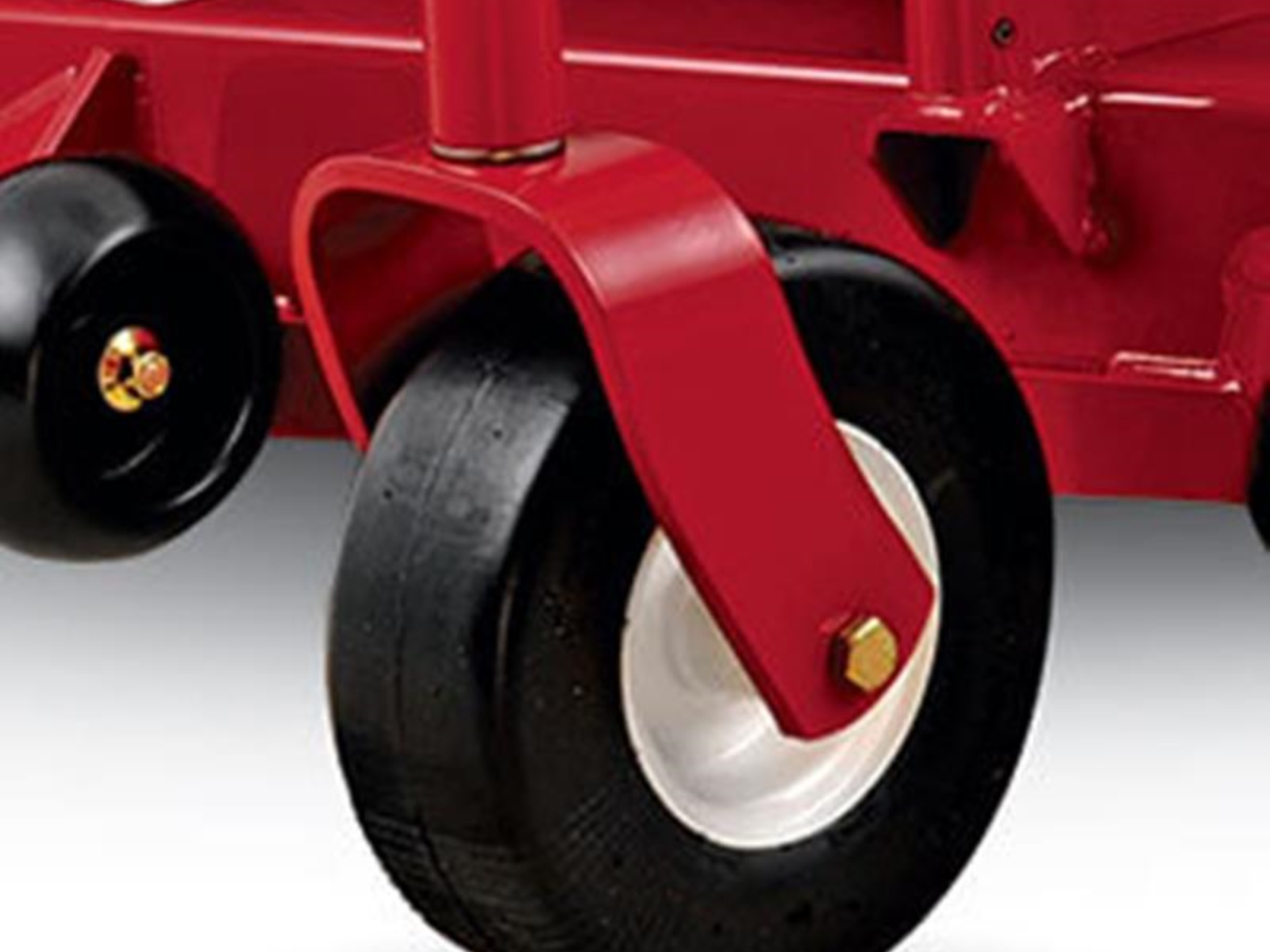 Standard 9” x 3.5-4” smooth-tread, semi-pneumatic front caster tires virtually eliminate tire repair.