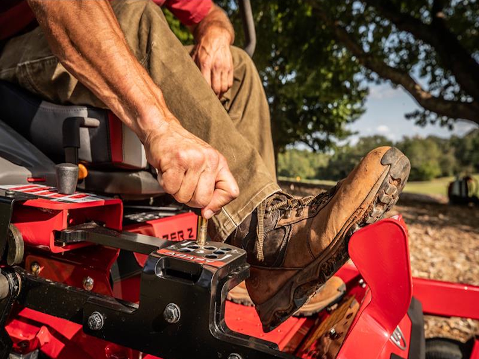 - Adjust deck rake quickly and easily without tools, from the operator seat, to optimize cut quality and performance in a variety of turf types and conditions. Adapt is particularly useful when mowing in wet, overgrown, or lush conditions, or stemmy grasses and weeds.
