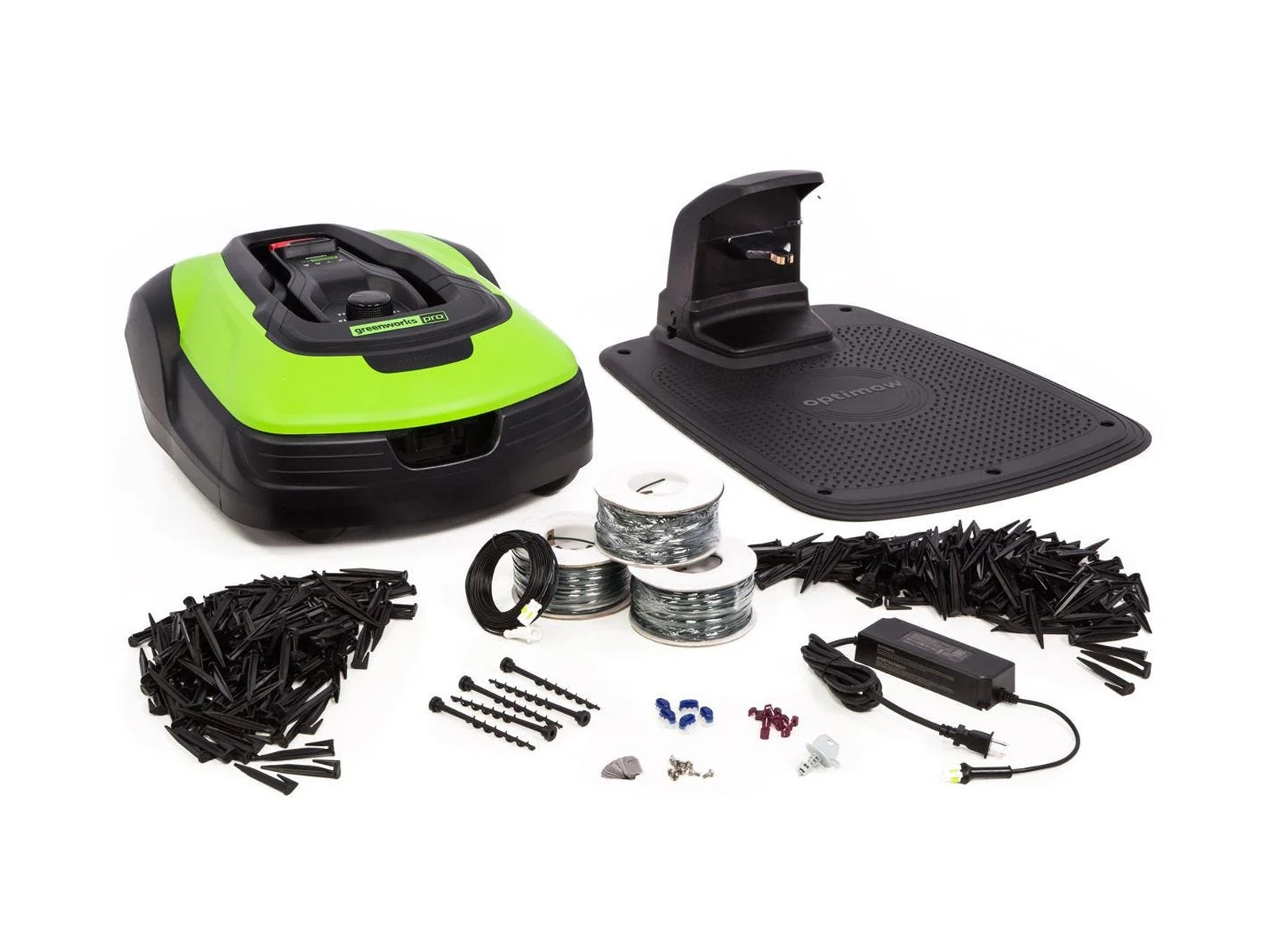 The Greenworks Pro optimow 50 is a fully automated Robotic Lawn Mower designed to expertly maintain lawns up to 3/4 acre. Installation is simple, and all required materials are included. Once installed, the optimow 50 will mow your lawn according to a pre-set, programmable schedule - charging itself when necessary. You will have full control of your robotic lawn mower via the GreenGuide App, where you can monitor or alter settings/schedule from anywhere in the world. The optimow 50 was designed with safety in mind, and features an integrated lifting sensor, collision sensors and rain/frost sensors. Despite its ability to cover large areas, the optimow 50 is highly maneuverable, and its exceptionally low operating noise means you'll forget its even there.