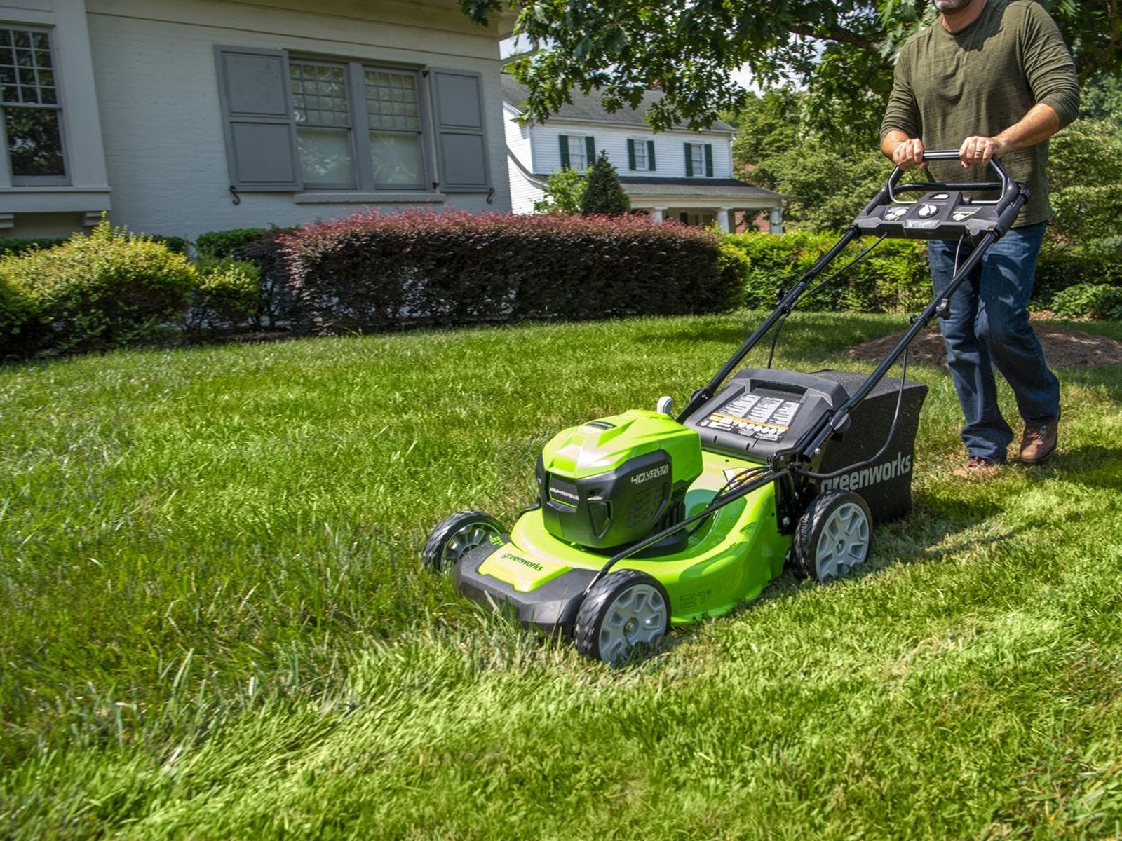 Powerfully smart. Tackle the toughest yards, one-handed, because our smart mowers never bog down. When grass gets thick, tall, or wet, Greenworks sensors tell our brushless motor to rush power to the mower blades. The end result? The perfect lawn, every time.