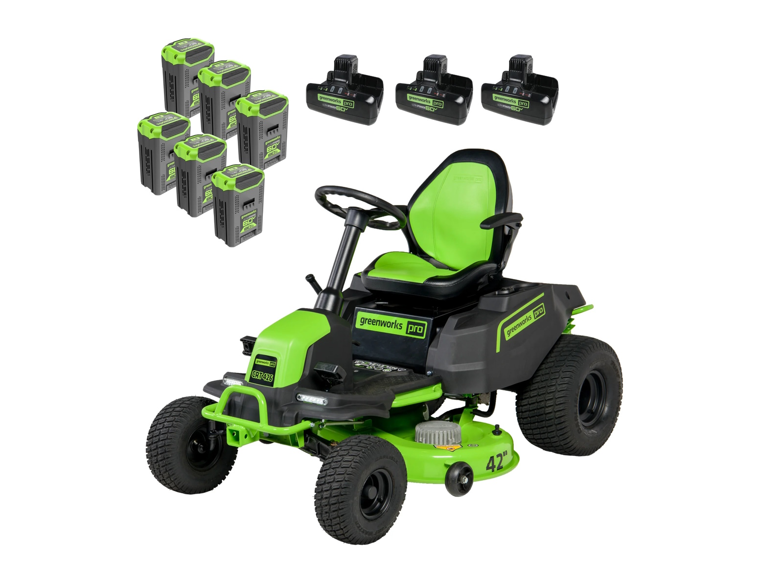 2024 Green Works 60V Cordless CrossoverZ 42" w/ Six (6) 8.0Ah Batteries and Three (3) Dual Port Turbo Chargers